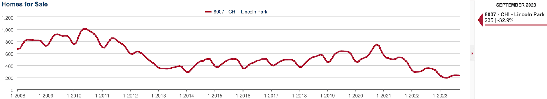 If you've noticed a rather glum attitude from your favorite Lincoln Park Realtor lately it's most likely not your imagination. It's been a tough year to be a real estate professional and it doesn't appear it will get easier any time soon. For the 3rd Quarter of 2023, total real estate transactions in Lincoln Park were down another 24.3% from 2022's already depressed levels, and current data suggests a continued rough road ahead. Inventory levels (homes listed for sale) are at historic lows, indicating that outside of an unexpected catalyst, the market's slow pace should continue well into 2024. The lack of inventory has helped push valuations to all-time highs, up nearly 4% over the past 12 months. In this article, we will dissect the current state of the Lincoln Park real estate market, including what's causing the slowdown, current inventory levels, pricing, and our prediction for the upcoming 2024 selling season. Let's get started and dive into the numbers...