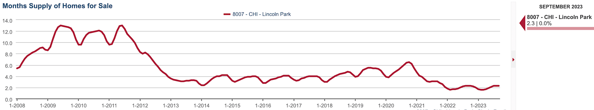 Lincoln Park real estate valuations continue to rise with a 3.9% increase over the 3-month period ending September 30, 2023. This is actually very good news for us considering much of the country is experiencing declines in real estate valuations. Persistently high mortgage rates and rising home prices continue to sideline many prospective homebuyers. Chicago also has the ongoing issues of increased crime, a lingering remote working environment, and the recent trend of suburban flight that may directly impact demand for Chicago housing going forward. How Chicago fares is difficult for anyone to predict. With so many of us with historically low 2% mortgage rates, I anticipate many owners will continue to choose to stay put and not sell unless they absolutely must. Others may decide to rent their homes and cash flow their low mortgage rates. All variables which point to continued low inventory levels going forward (lack of sellers). This same lack of inventory may ultimately be the catalyst for increases in valuations should demand once again return to more normalized levels.